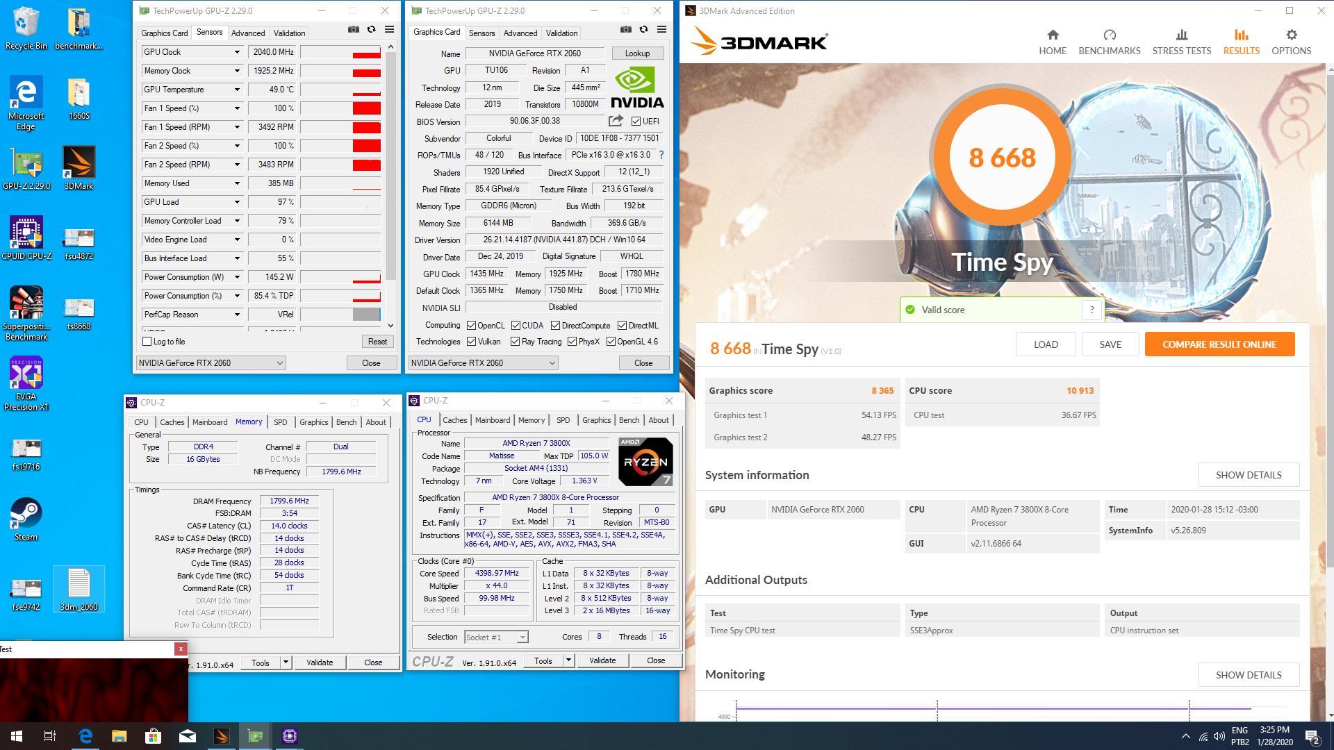 SOFTWARE: Windows 10 x64 1909 (Forceware 441.87), GPU-Z 2.29.0, 3DMark e Unigine Superposition