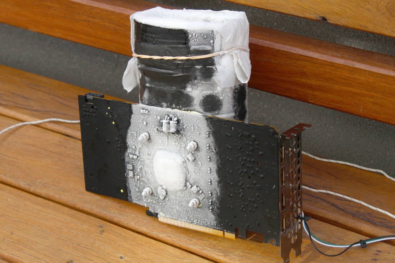 Sobre o comportamento do GPU, o Navi 14, assim como o Navi 10, funcionou perfeitamente enquanto submetido a temperaturas negativas na casa dos -50ºC, não apresentando problemas como coldbug, coldslow ou mesmo artefatos por conta da temperatura, o que é muito bom! Do ponto de vista da tensão utilizada, o Navi 14 não escalou com mais de 1.4V (ao menos não para essa faixa de temperatura) apresentando artefatos e instabilidade ao tentar usar algo como 1.45V sendo que a frequência máxima que foi possível de se completar o Fire Strike foi de 2280MHz, ainda que o resultado tenha sido um pouco inferior ao obtido com 2270MHz.